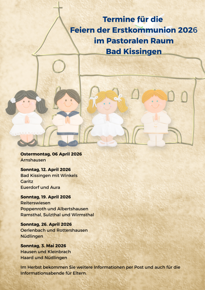 Am Sonntag, den 26. April 2026 feiern die Kinder aus Nüdlingen ihre 1. feierliche Erstkommunion.