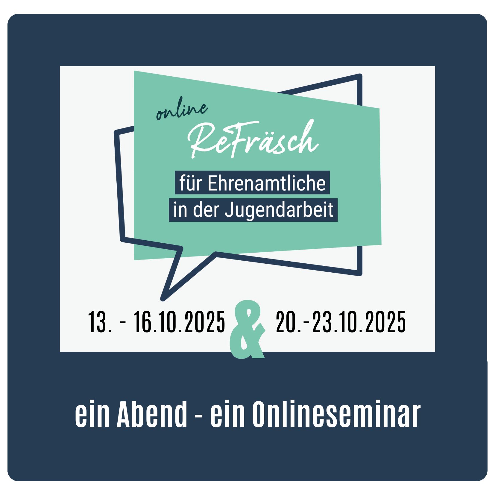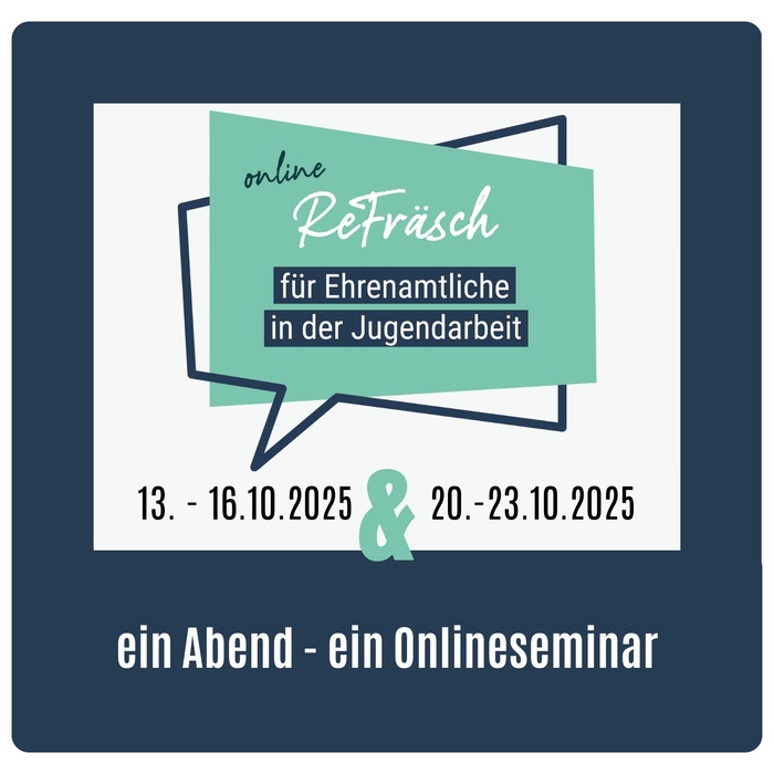 Unsere neue Online-Reihe ReFräsch 2025 ist da. Auch in diesem Jahr bieten wir in Kooperation mit der Evangelischen Jugend Bad Neustadt und den Kreisjugendringen Bad Kissingen und Rhön-Grabfeld wieder ein umfangreiches Programm. Du brauchst neue Inputs für Deine Jugendarbeit? Dann melde Dich gerne an.