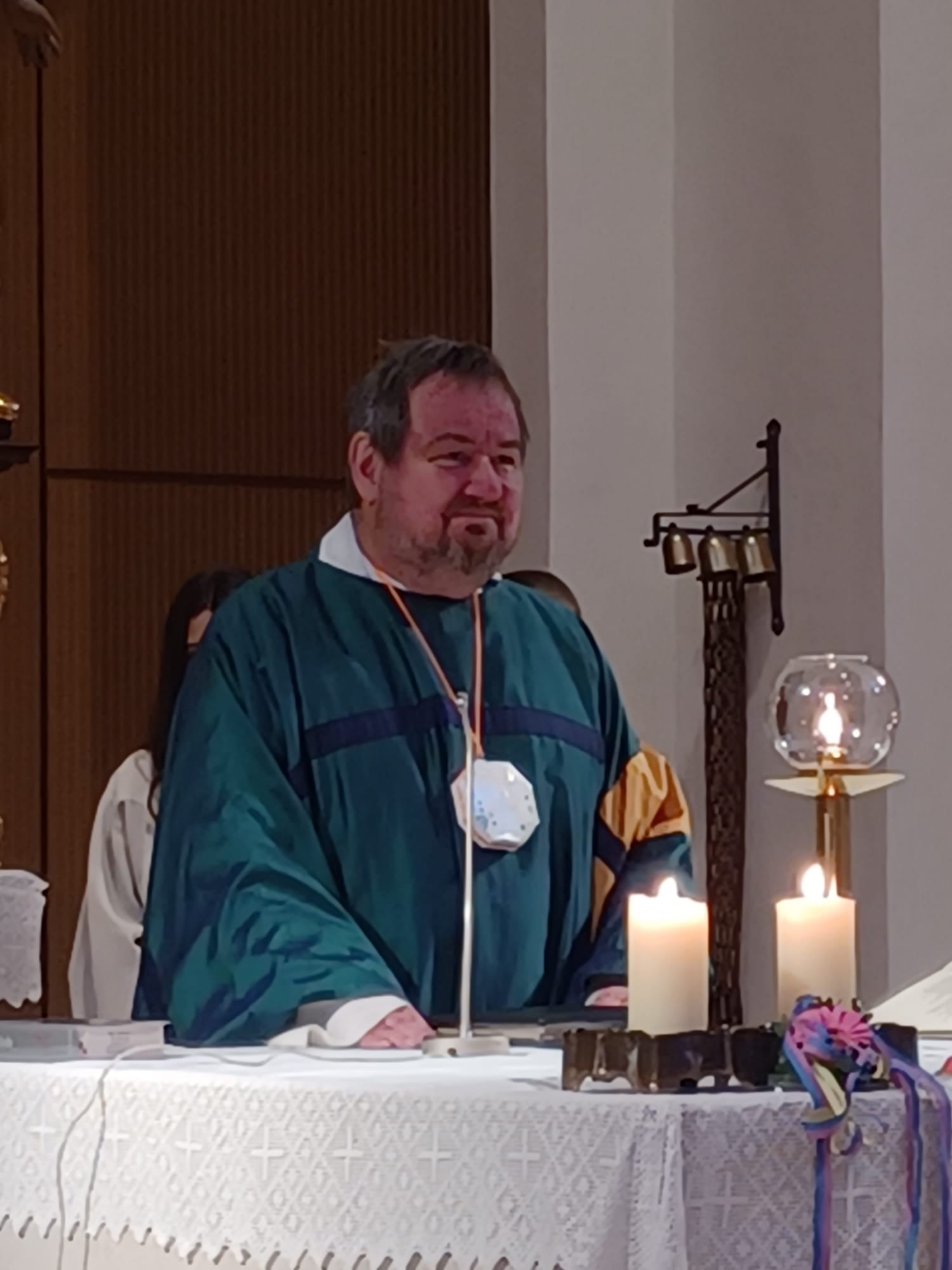 Ein besonderes Erlebnis gab es wieder in der PG am Faschingswochenende. Pfarrer Michael Erhart erfreute mit seiner Büttenpredigt die Gottesdienstbesucher. Seine Rede war von sehr hohem Niveau und hätte aktueller nicht sein können. Dafür gab's viel Applaus und natürlich einen süßen Orden. Die Kokis und Katechetinnen kam verkleidet zum Gottesdienst und die Kirche war von der Gärtnerei Zösch wunderschön mit Luftballons und Luftschlangen geschmückt