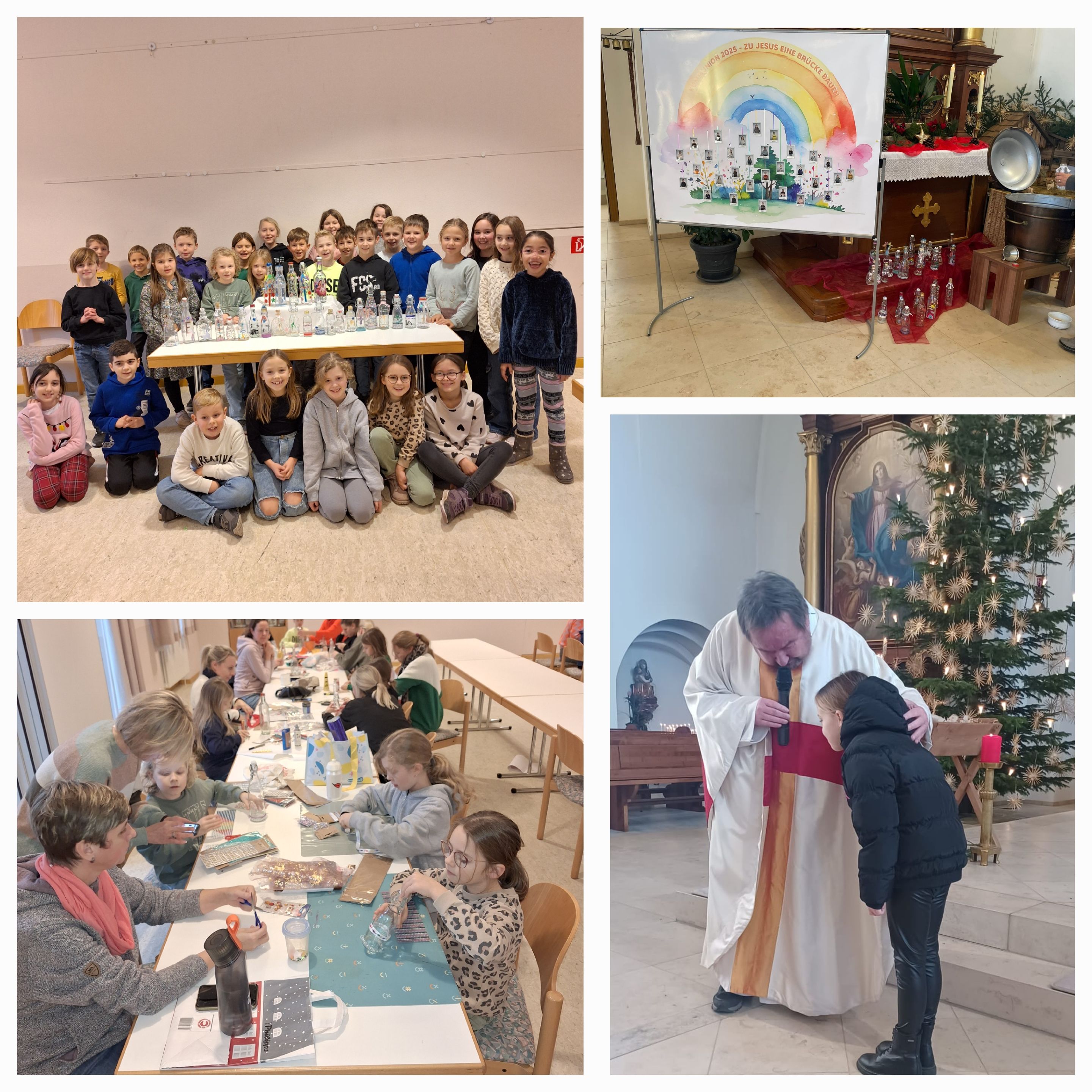 Am 14. Dezember fand im Pfarrheim in Sand ein kreativer Bastelnachmittag statt, bei dem fast alle Kinder der Gemeinde dabei waren, um individuelle Weihwasserflaschen zu gestalten. Die Kinder konnten sich kreativ austoben und hatten sichtlich Freude daran, ihre eigenen Designs mit Glitzer, Kleber und bunten Bändern umzusetzen.