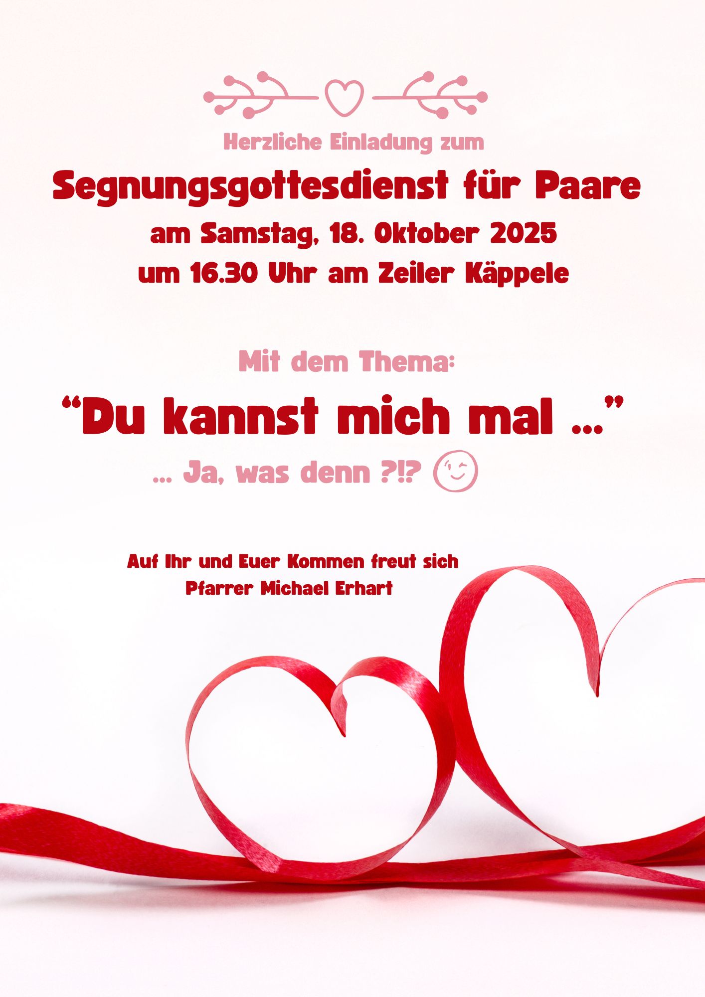 Herzliche Einladung zum Segnungsgottesdienst für Paare am Samstag, 18. Oktober 2025, 16.30 Uhr, im Zeiler Käppele